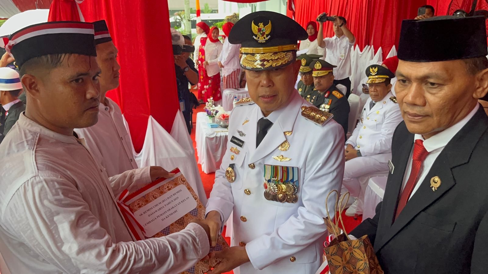 Upacara penyerahan Surat Keputusan (SK) remisi itu berlangsung di Lapas Kelas IIA Kendari. Gubernur Sultra, Andi Sumangerukka bertindak sebagai inspektur upacara sekaligus membacakan sambutan Menteri Imigrasi dan Pemasyarakatan (Imipas). Acara ini turut dihadiri jajaran Forkopimda, pejabat Kanwil Ditjenpas Sultra, serta perwakilan warga binaan penerima remisi.