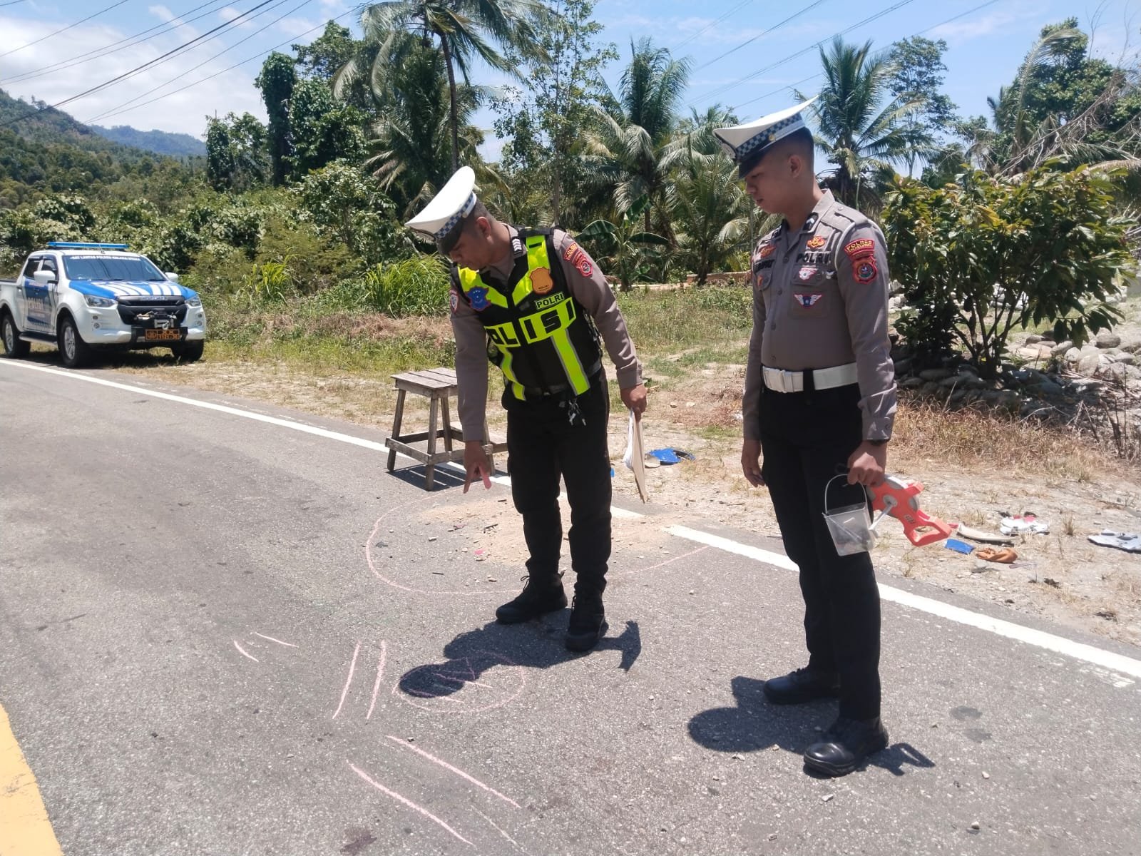 Polisi yang menerima laporan langsung mendatangi lokasi untuk melakukan olah tempat kejadian perkara (TKP) dan mengamankan kendaraan yang terlibat kecelakaan. Dari hasil pemeriksaan, kondisi jalan di lokasi kejadian beraspal baik, tetapi memiliki tikungan yang cukup tajam.