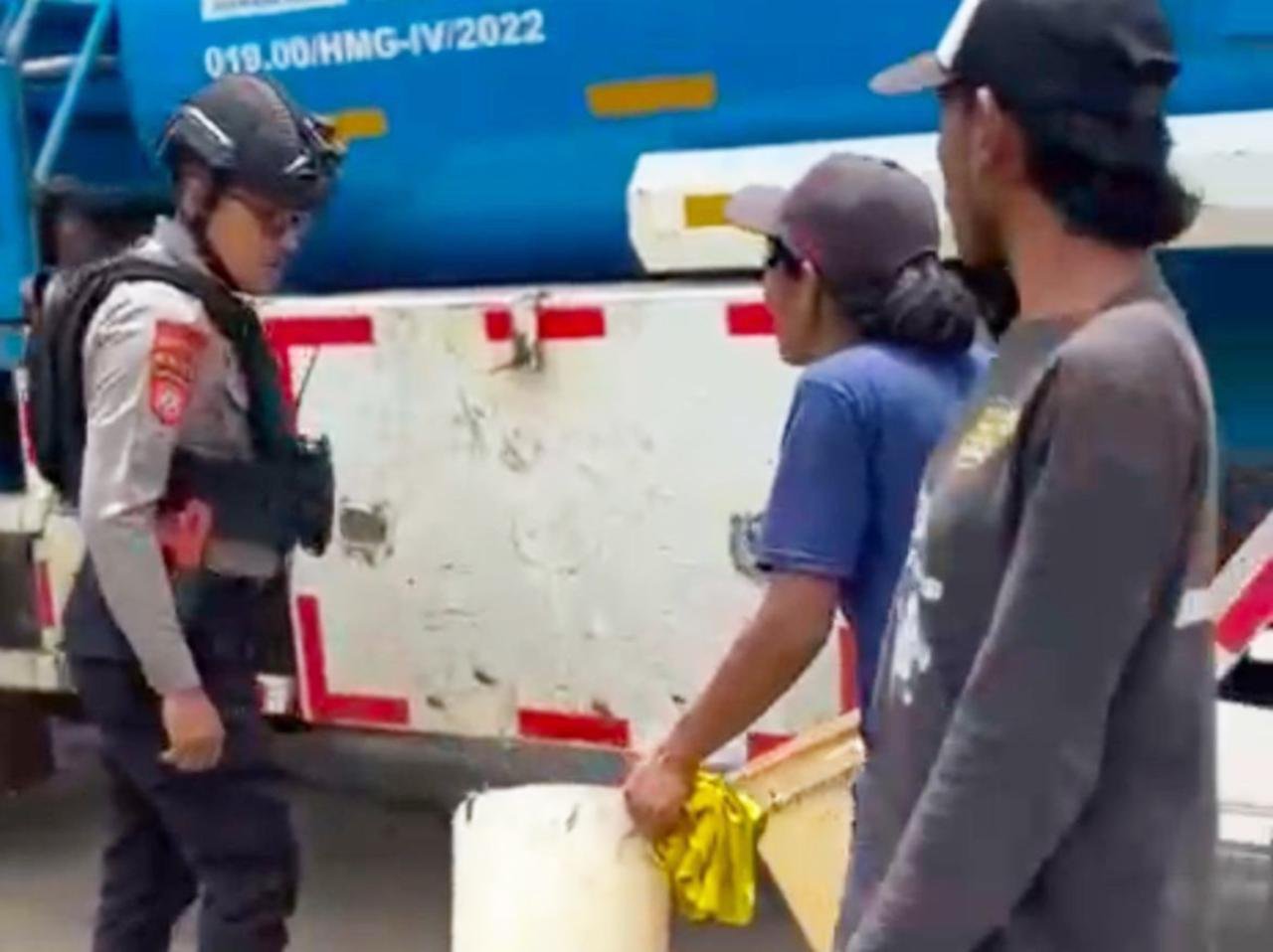 Dari tangan keduanya, polisi menyita barang bukti berupa satu jeriken berisi lima liter solar dan empat ember kosong yang diduga digunakan untuk menampung bahan bakar hasil palakan.