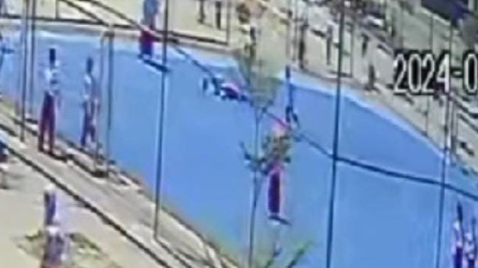 Dalam rekaman CCTV yang diterima Kendariinfo, sejumlah pelajar berseragam merah-putih tampak berlarian di area lapangan sekolah itu. Tiba-tiba, ada dua pelajar yang saling bertabrakan hingga menyebabkan salah satu di antaranya jatuh di tengah lapangan.
