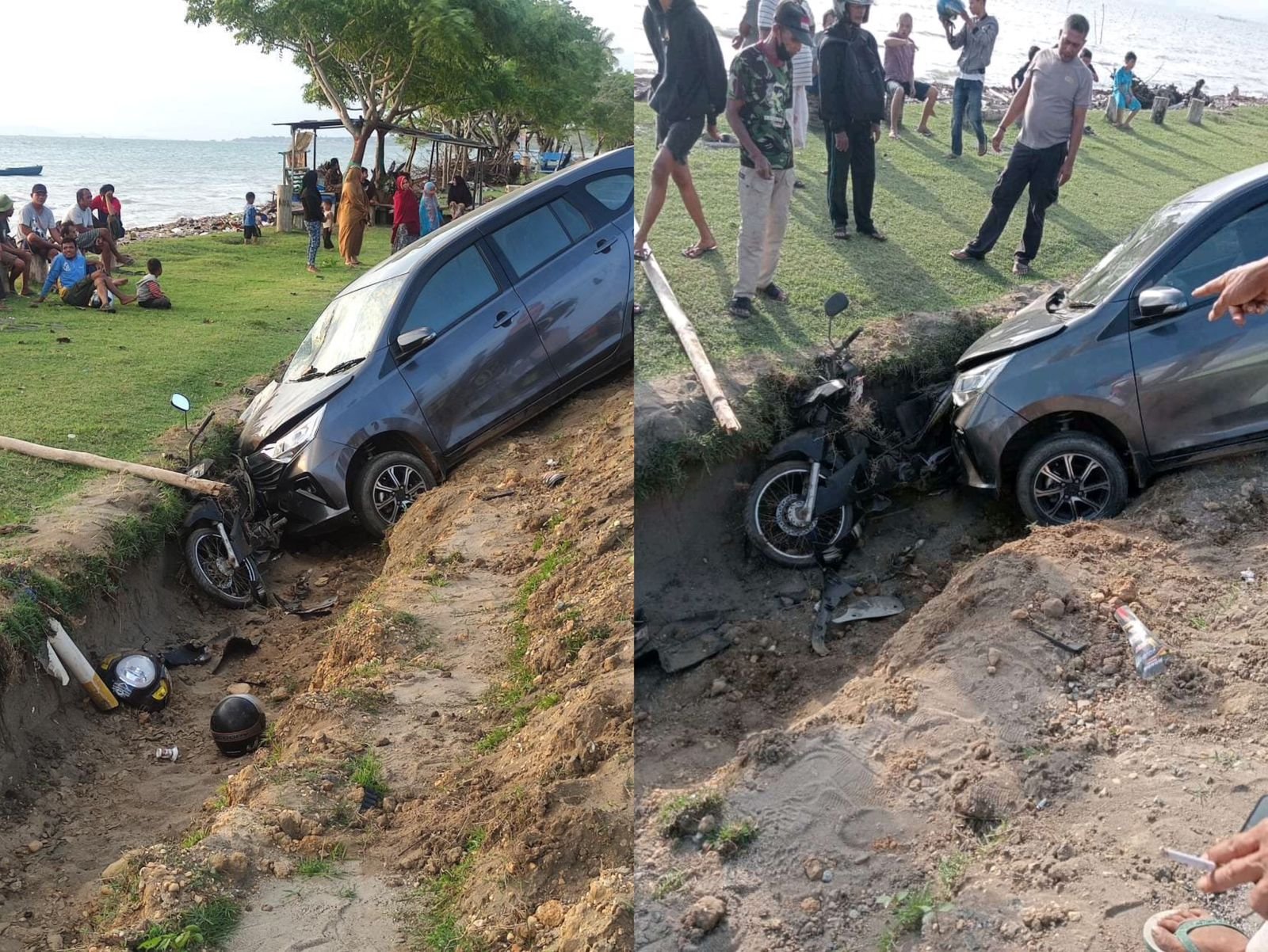 “Pengendara mobil Sigra sempat melakukan pengereman, tetapi masih mengenai dua pengendara motor yang bergerak dari arah Toari menuju Tanggetada hingga masuk ke dalam parit,” terangnya.