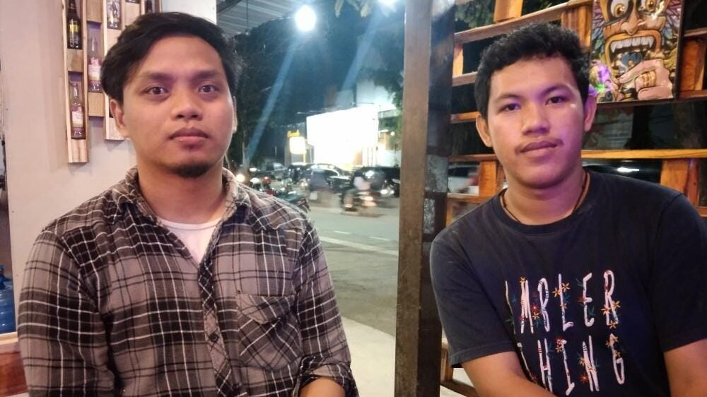 Dua pria yang diteror sekelompok pembawa busur dan parang saat melintas di Jalan Saosao, Kota Kendari. Foto: Herlis/Kendariinfo. (26/12/2022).