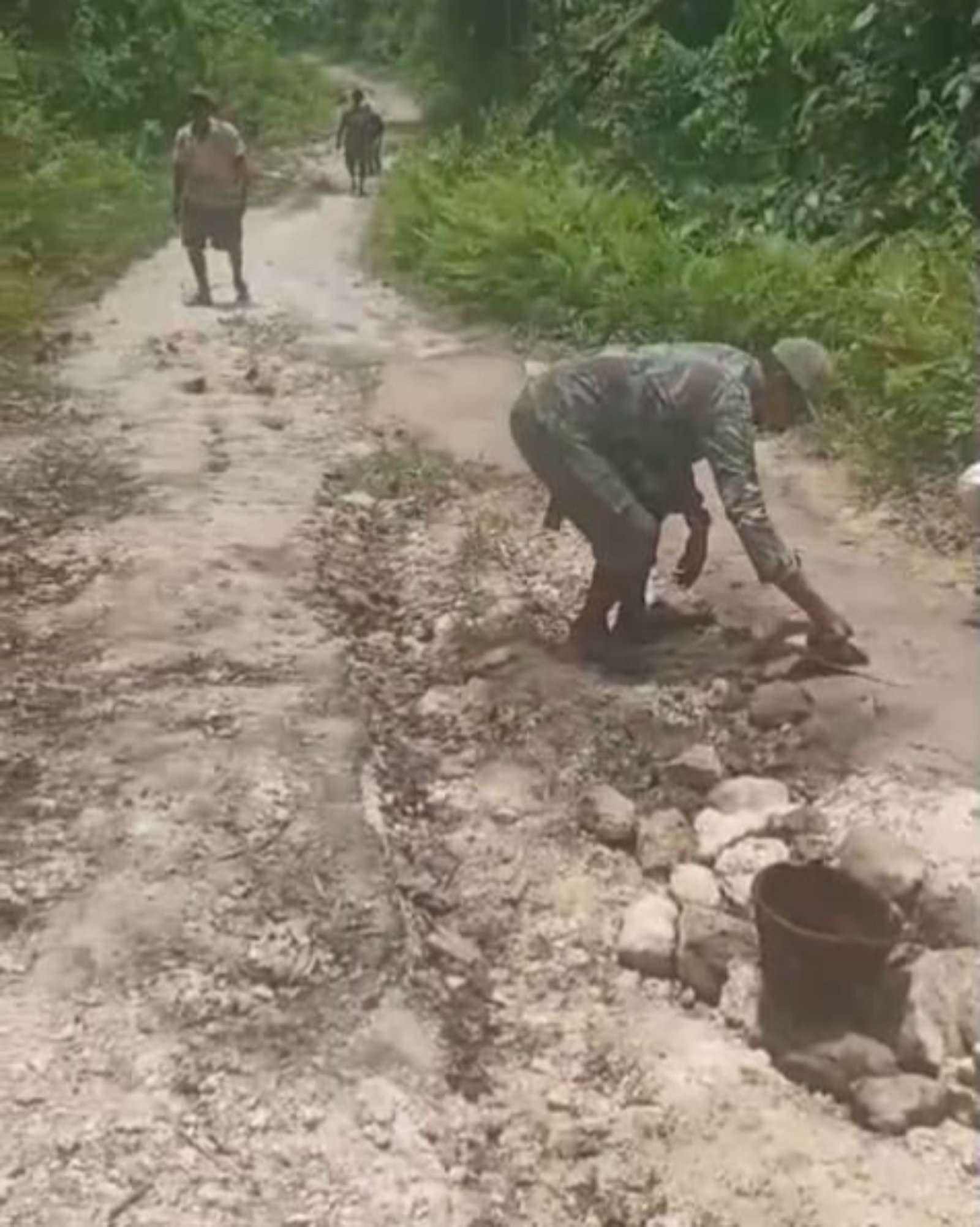 Dalam sebuah video yang diterima Kendariinfo, tampak warga menambal ruas jalan dengan campuran semen dan pasir. Aspal yang tersisa hanya sedikit, sedangkan sebagian besar ruas jalan telah berubah menjadi pengerasan dengan dipenuhi bebatuan kecil hingga besar.