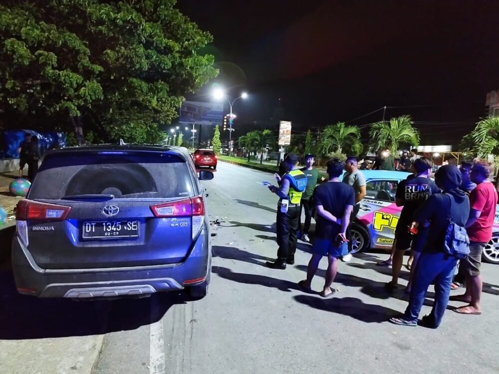 Ketika sampai di Jalan Edi Sabara, Kijang Innova yang dikendarai MS hilang kendali dan langsung menabrak bagian belakang mobil Honda Brio bernopol DT 1711 TE yang sedang terparkir.