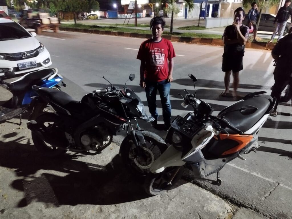 Tabrakan itu terus berlanjut, karena Mobil Honda Brio kedua yang ditabrak terdorong dan menghantam dua sepeda motor yang juga sedang terparkir yakni X-Ride dengan nopol DT 6132 MF dan Vixion DT 6806 RE.