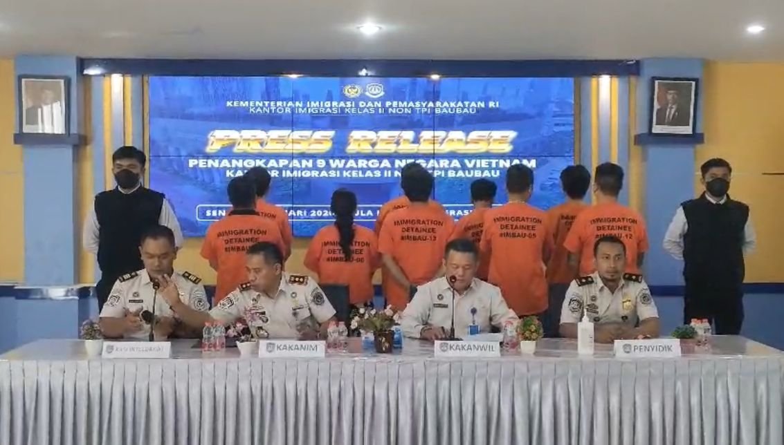 Buton Utara – Sebanyak sembilan warga negara asing (WNA) asal Vietnam diamankan Petugas Kantor Imigrasi Kelas II Baubau di sebuah hotel di Kecamatan Wakorumba Utara, Kabupaten Buton Utara (Butur), Sulawesi Tenggara (Sultra), Selasa (13/1/2026). Mereka diduga hendak menyeberang secara ilegal menuju Australia melalui jalur laut.