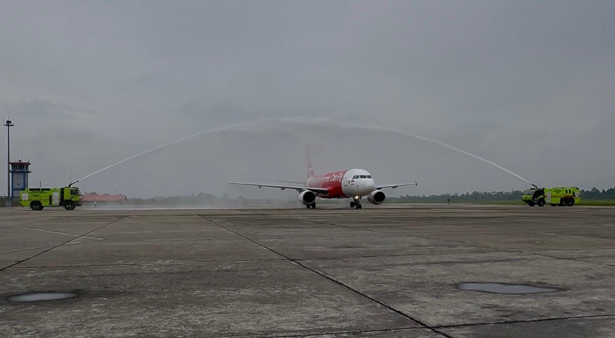 AirAsia Layani Rute Kendari – Makassar, Penerbangan Perdana Disambut Water Salute di Bandara Haluoleo