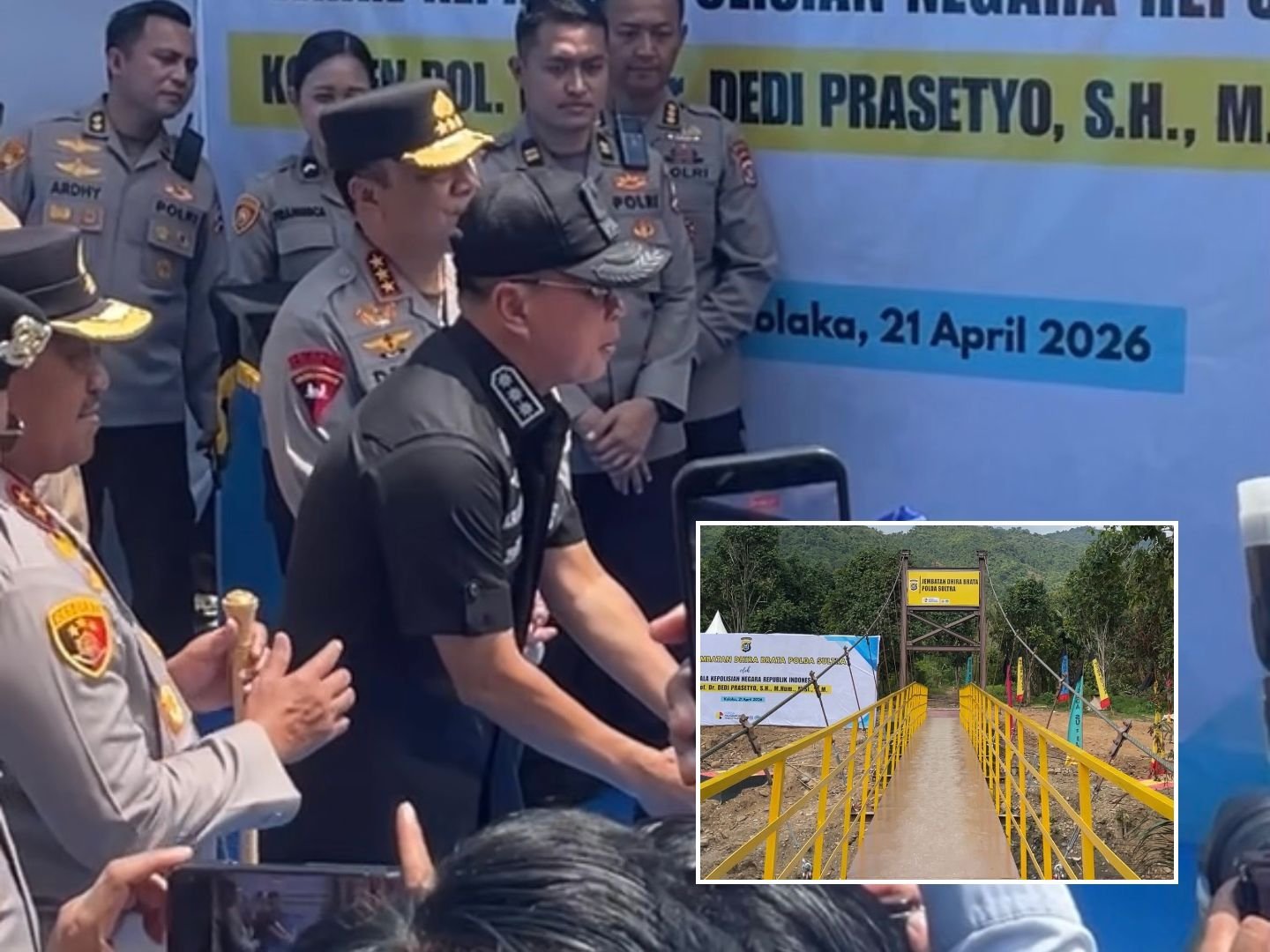 Kolaka – Wakil Kepala Kepolisian Republik Indonesia (Wakapolri), Komjen Pol Dedi Prasetyo, meresmikan jembatan gantung Dhira Brata di Kabupaten Kolaka, Sulawesi Tenggara (Sultra), Selasa (21/4/2026).