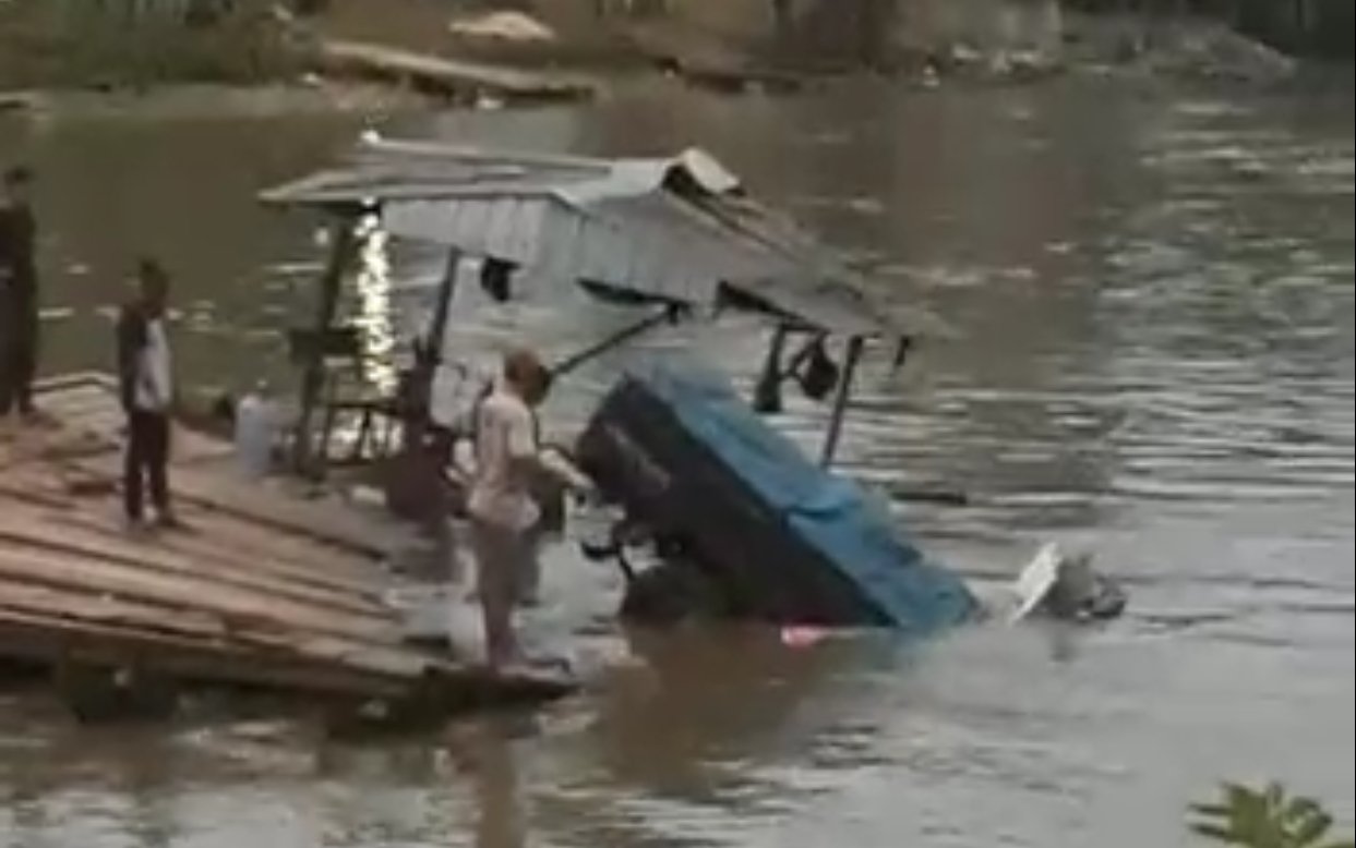 Akibat Muatan Berat, Mobil Pick Up Tenggelam di Sungai Konaweha saat Naik Pincara