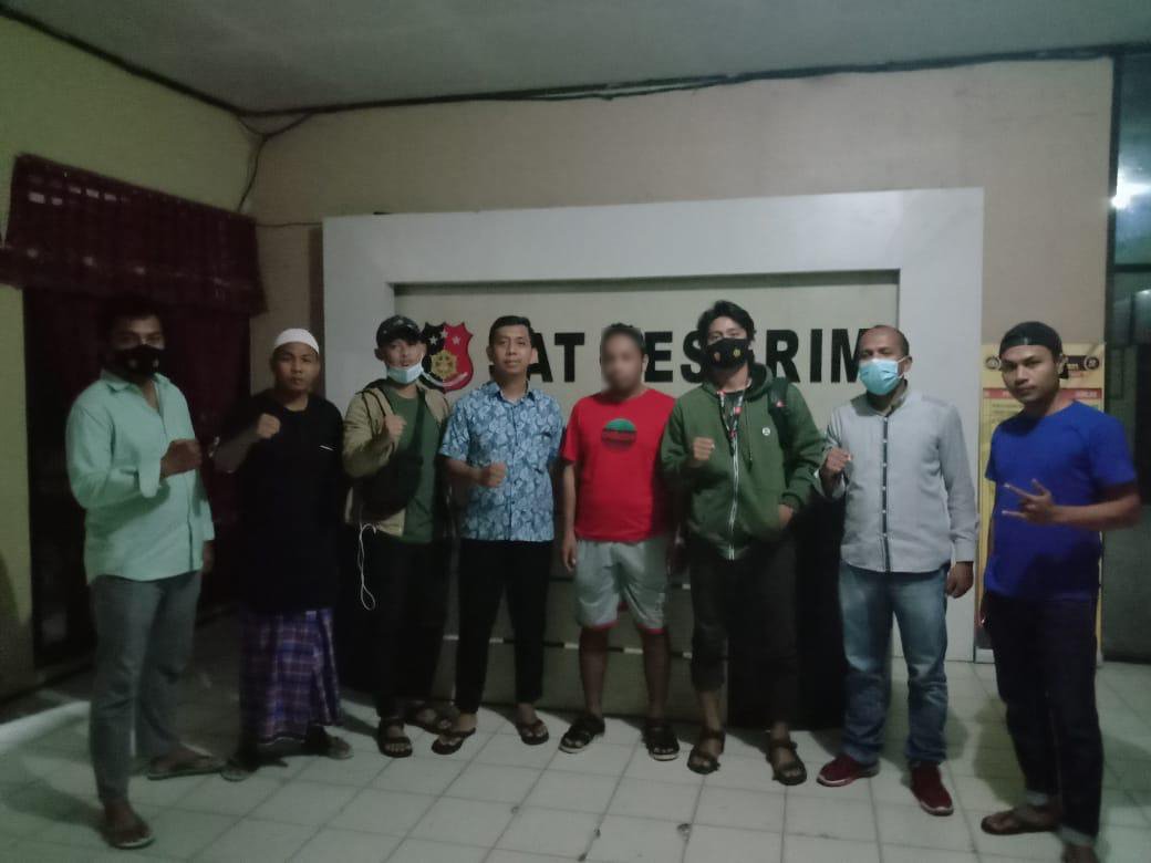 Pelaku berpakaian kaos berwarna merah, setelah ditangkap Satreskrim Polres Kendari. Foto: Istimewa. (23/1/2021).