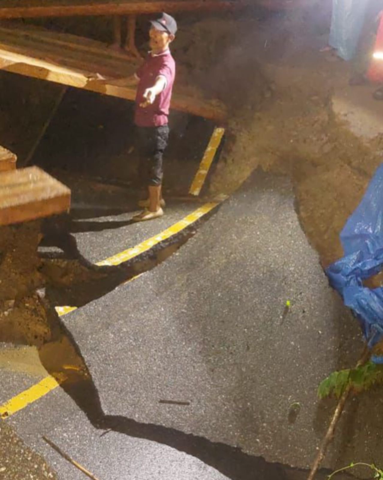 “Kita sementara buat jembatan darurat ini, motor bisa, kalau mobil tidak bisa lewat. Ada juga pohon tumbang. Anggota sementara kerja sama dengan warga,” tambahnya.