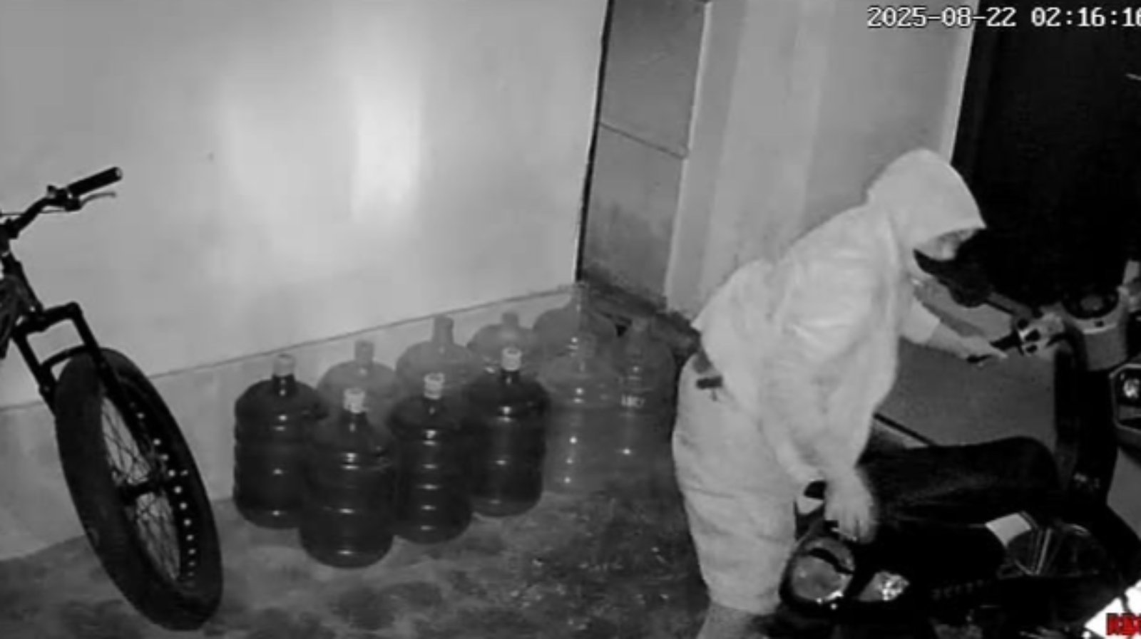 Aksi pencurian itu terekam CCTV milik salah seorang warga bernama Bur. Ia mengungkapkan peristiwa tersebut terjadi sekira pukul 02.16 Wita. Dalam rekaman CCTV terlihat pelaku berusaha membobol beberapa motor warga yang lain termasuk motor milik Bur.