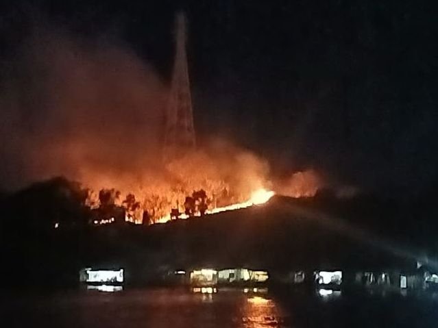 Kendari – Kebakaran alang-alang terjadi di dekat pemancar di Kelurahan Bungkutoko, Kecamatan Nambo, Kota Kendari, Sulawesi Tenggara (Sultra), Sabtu (13/9/2025). Api melalap alang-alang mulai dari sore hingga malam hari.