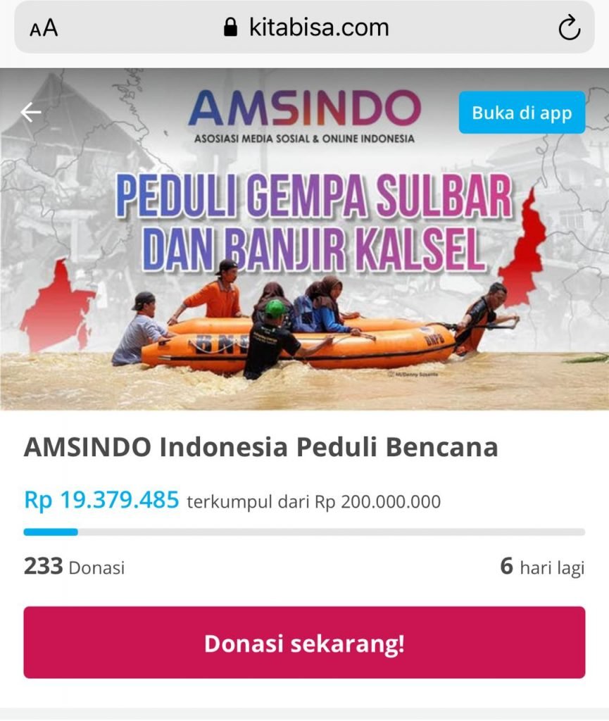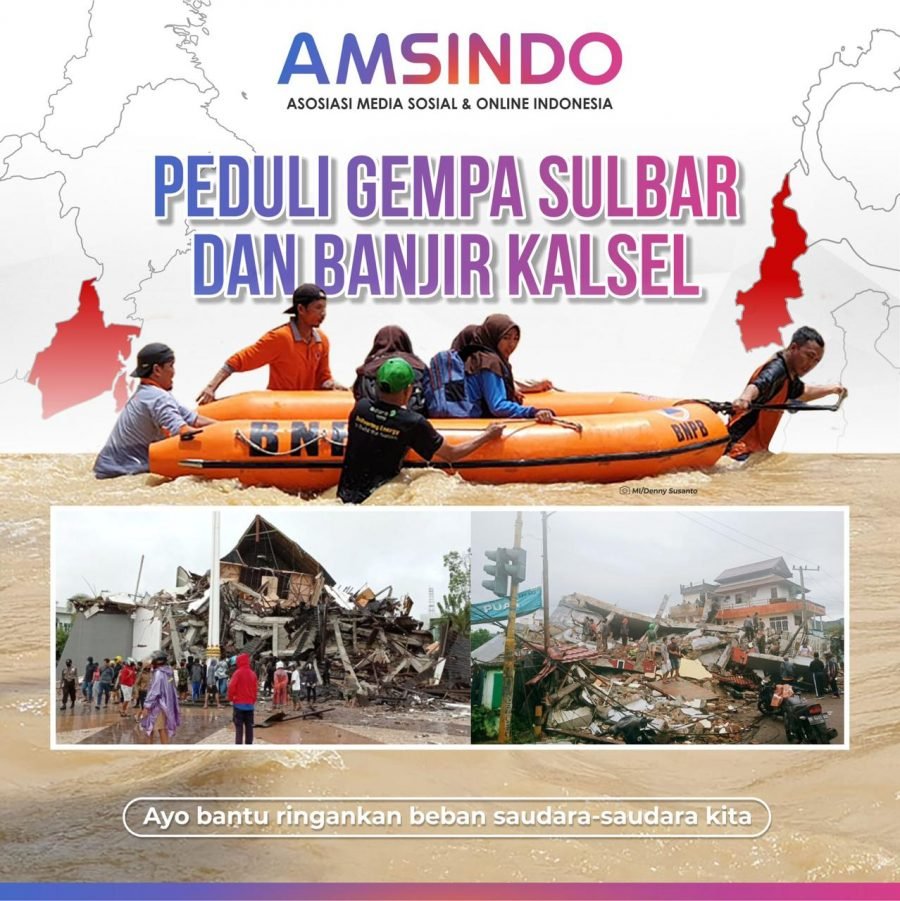Oleh itu, atas nama kemanusiaan, kami dari Asosiasi Media Sosial dan Siber Indonesia (AMSINDO) membuka donasi untuk membantu masyarakat terdampak yang banjir di Kalsel dan gempa bumi di Sulbar.