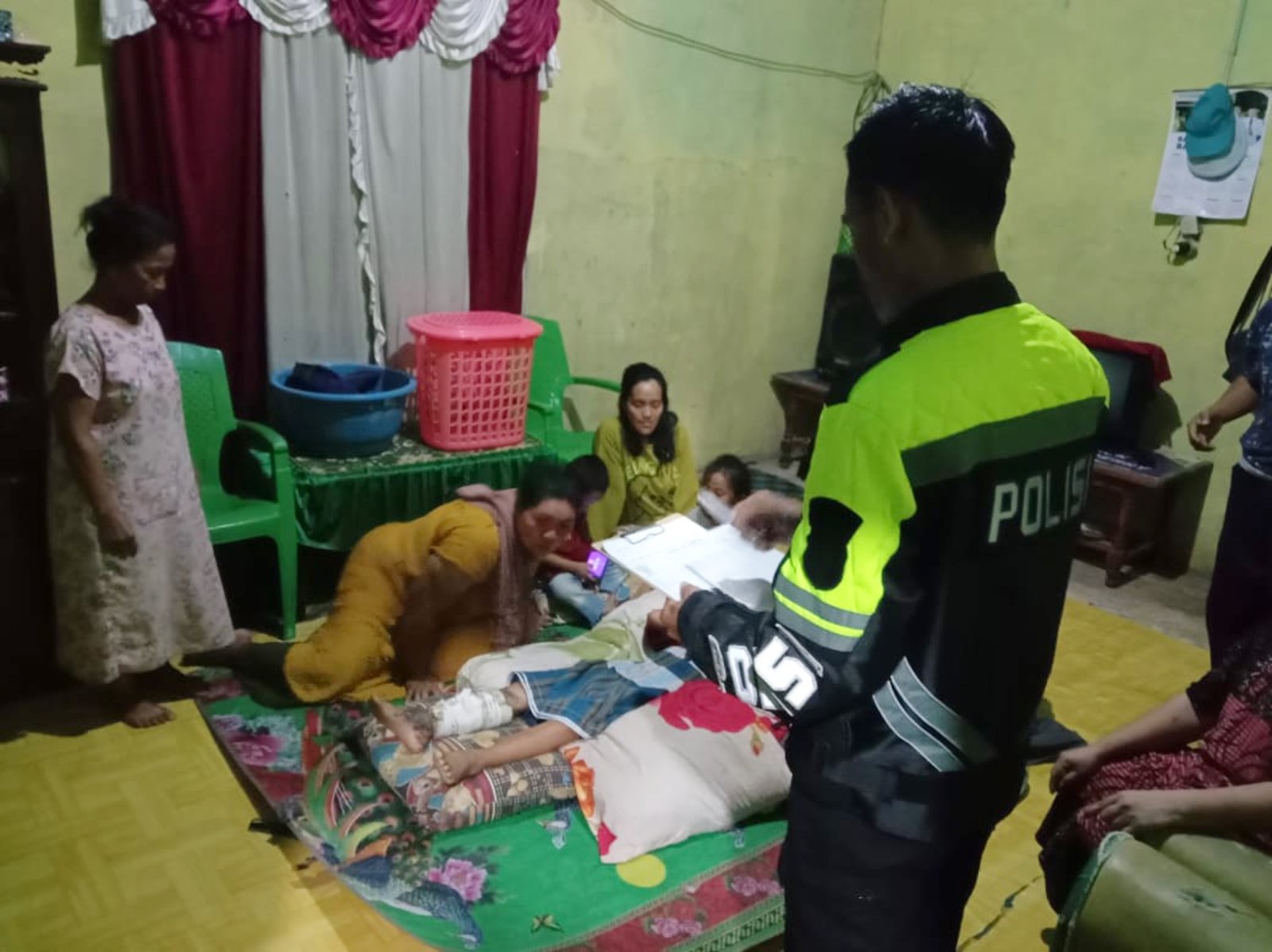 Anggota Satlantas Polres Konsel saat mengecek kondisi korban tabrak lari berinisial NSP (9) di rumahnya. Foto: Istimewa.