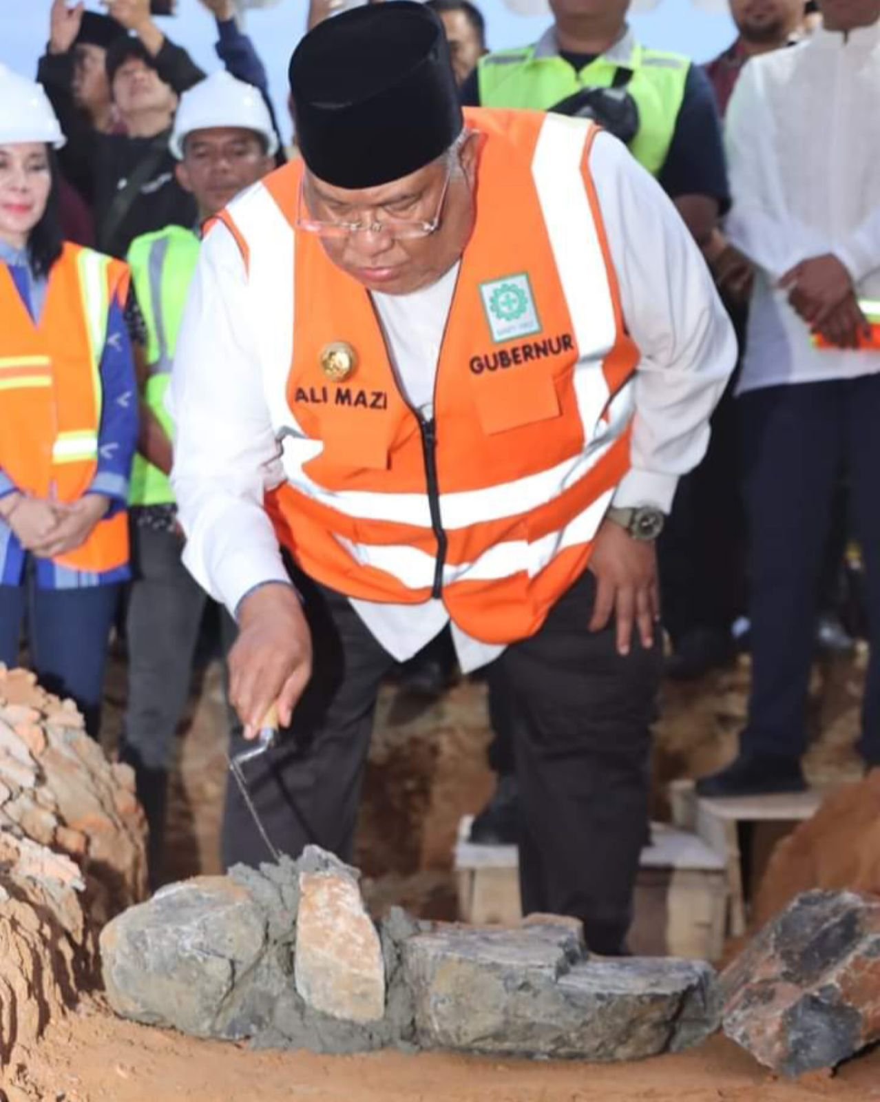 Sulawesi Tenggara – Gubernur Sulawesi Tenggara (Sultra), Ali Mazi resmi meletakkan batu pertama pembangunan Gedung Poliklinik dan Manajemen Rumah Sakit Jiwa Provinsi Sultra di Tobuuha, Kecamatan Puuwatu, Kota Kendari, Minggu (9/7/2023). Proyek tersebut menelan dana sekitar Rp30 miliar.