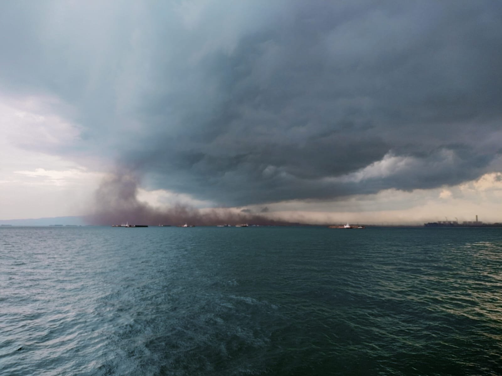 Angin debu di sekitar dermaga PT Pelabuhan Muara Sampara (PMS), Desa Tani Indah, Kecamatan Kapoiala, Kabupaten Konawe, Sulawesi Tenggara (Sultra). Foto: Istimewa. (4/11/2025).