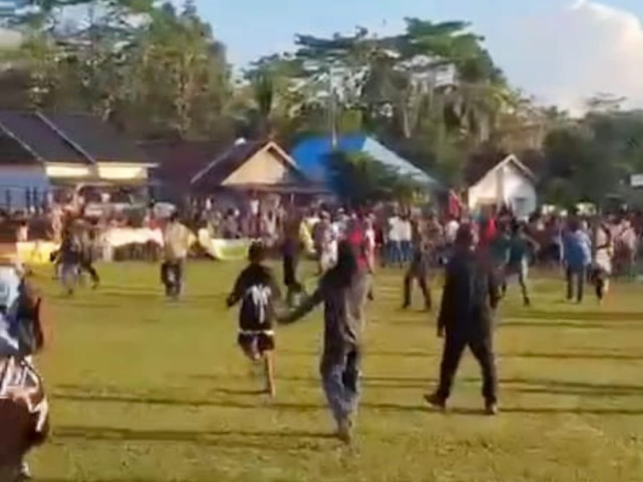 Muna Barat – Babak 16 besar sepak bola KONI Cup 1 di Lapangan Guali, Kecamatan Kusambi, Kabupaten Muna Barat (Mubar), Sulawesi Tenggara (Sultra), berakhir ricuh. Sejumlah penonton memasuki lapangan dan mengejar wasit saat pertandingan sedang berlangsung, Kamis (2/10/2025).