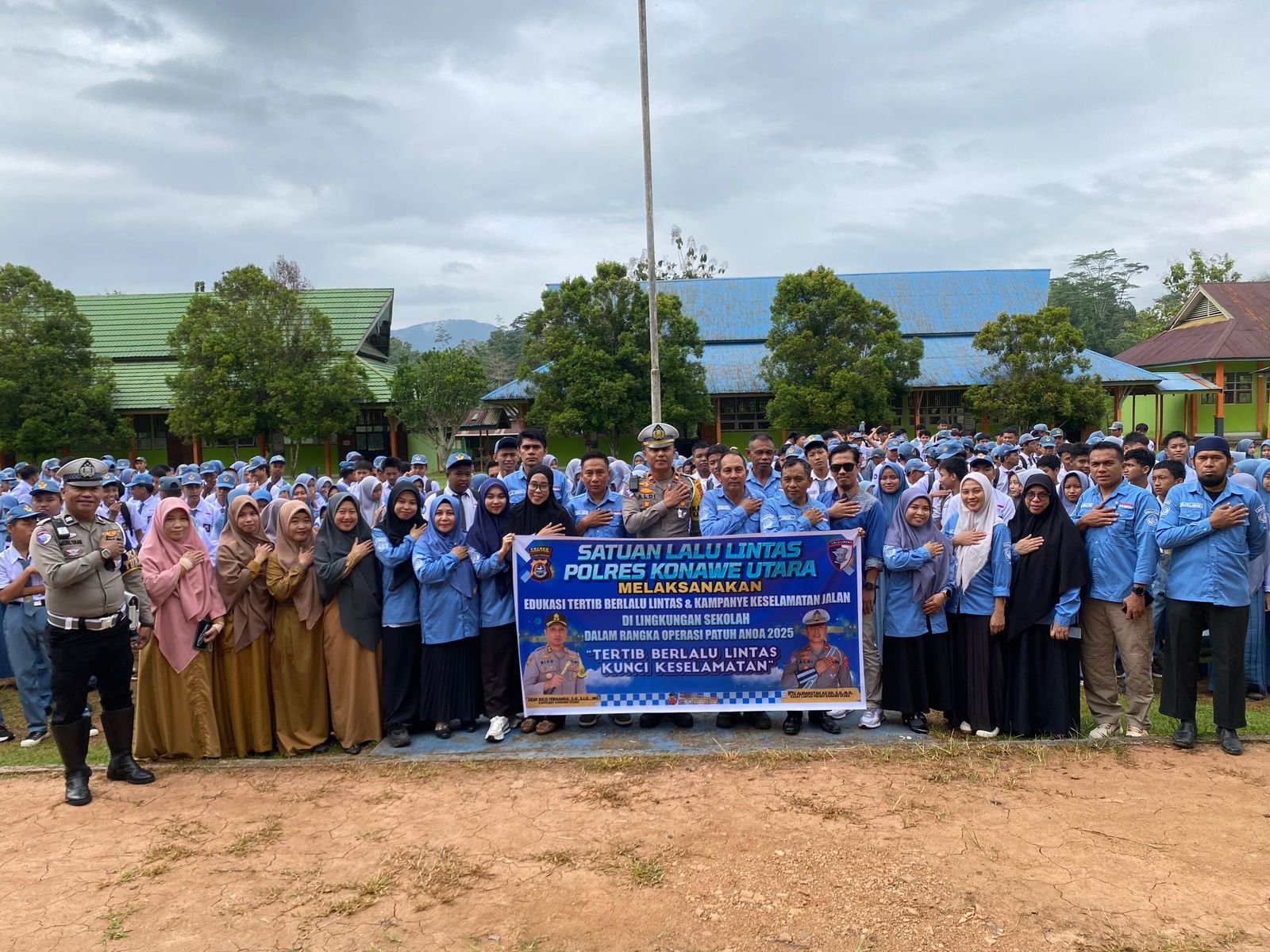 Konawe Utara – Satuan Lalu Lintas (Satlantas) Polres Konawe Utara (Konut) menggelar kegiatan edukasi tertib berlalu lintas dan kampanye keselamatan jalan di Sekolah Menengah Atas Negeri (SMAN) 1 Asera, Selasa (22/7/2025).