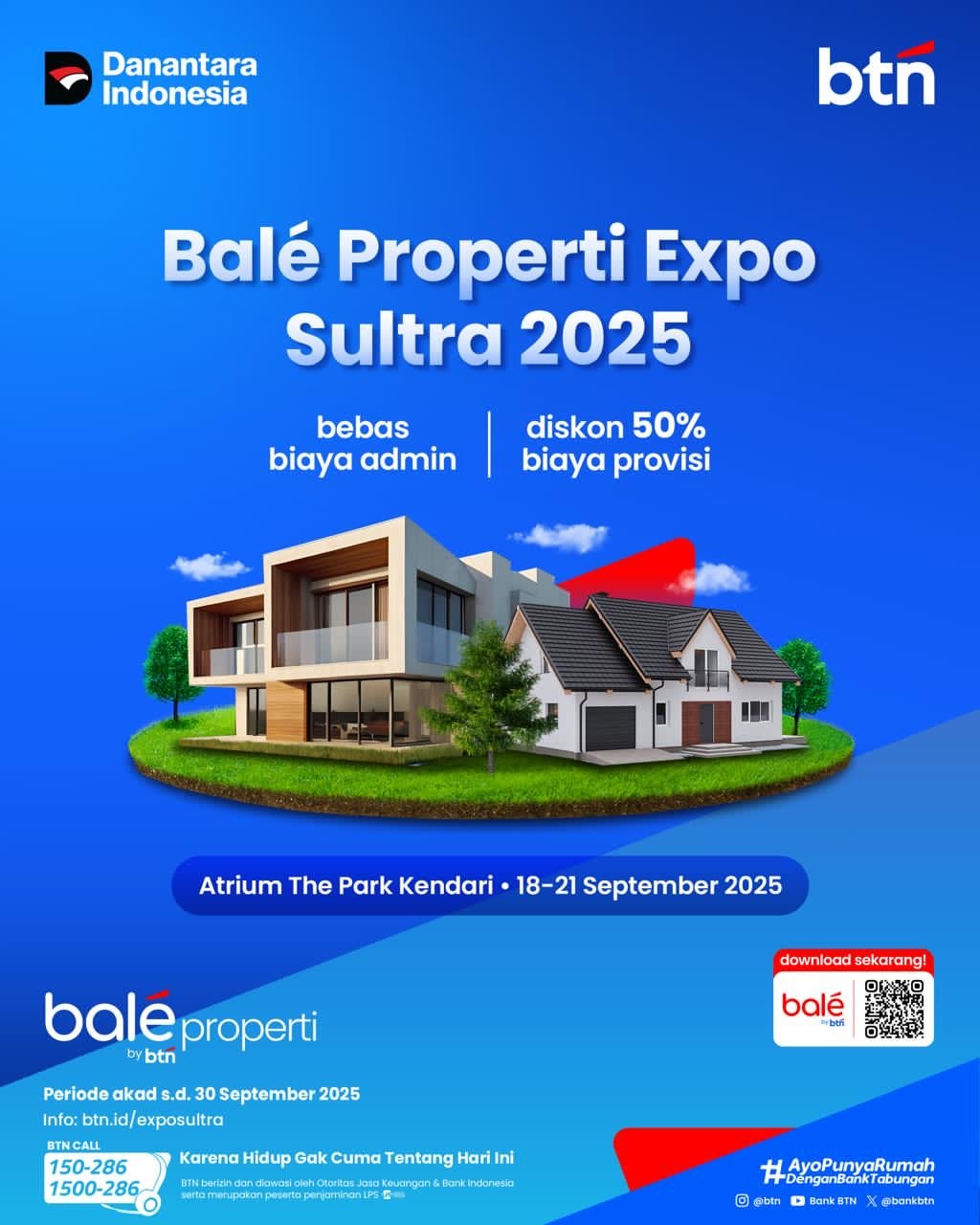 Kendari – Masyarakat Sulawesi Tenggara (Sultra) yang mendambakan rumah sendiri kini punya kesempatan emas. Bale Expo Properti Sultra 2025 akan digelar di Atrium The Park Kendari pada 18 – 21 September 2025, dengan penawaran promo uang muka atau down payment (DP) super ringan mulai Rp80 ribu.