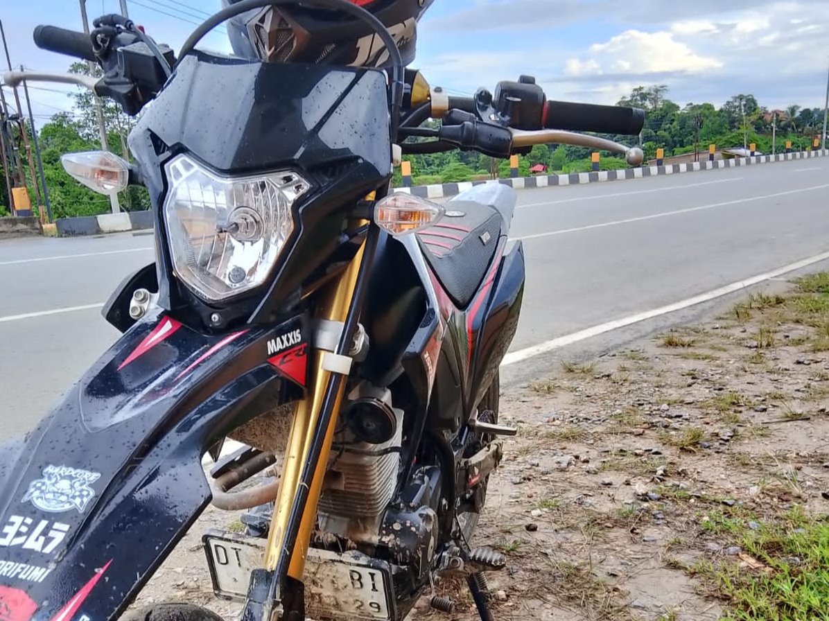 Sepeda motor Honda CRF milik warga bernama Ruslan yang hilang dicuri di teras rumahnya di BTN Baruga Saranani Lestari, Jalan Mata Oleo, Kelurahan Baruga, Kecamatan Baruga, Kota Kendari. Foto: Istimewa.