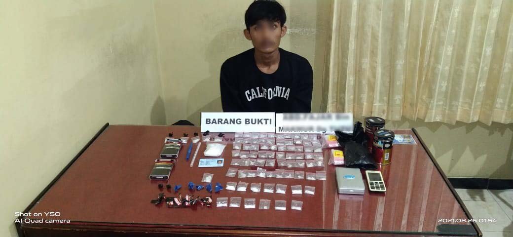 Kendari – Tim Opsnal Unit 1 Subdit 3 Ditresnarkoba Polda Sultra kembali membekuk seorang pria terduga pelaku tindak pidana narkotika jenis sabu-sabu seberat 100,16 gram berinisial AF (19) di Kendari, Kamis (26/8/2021).