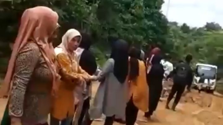 Dia menyebut, jalan rusak merupakan salah satu indikator kepemimpinan yang tidak berhasil. Di akhir video, para ibu yang dibantu sejumlah pria menarik bus keluar dari jebakan lumpur.