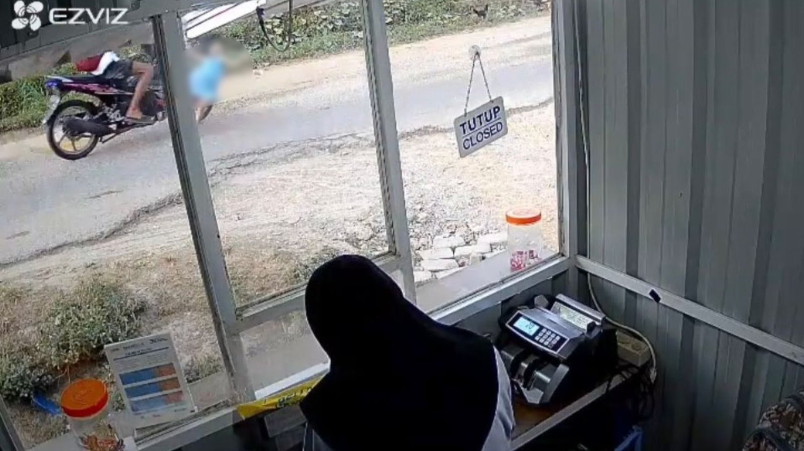 Awalnya warga mengira bocah memakai baju biru itu hanya terjatuh sendiri, namun rekaman CCTV justru memperlihatkan bahwa ia benar-benar tertabrak motor.