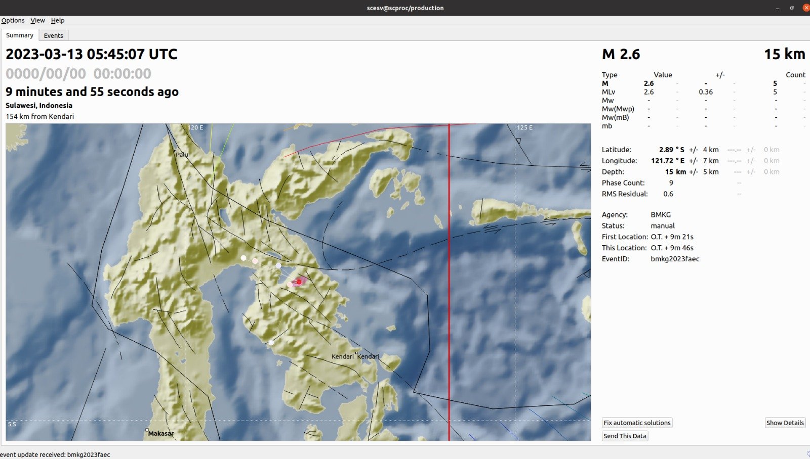 “Info gempa magnitudo M 2,6 pada pukul 13.45 Wita di timur laut Routa, Kabupaten Konawe, Sultra,” kata Kepala Stasiun BMKG Kota Kendari, Rudin melalui keterangan resminya.