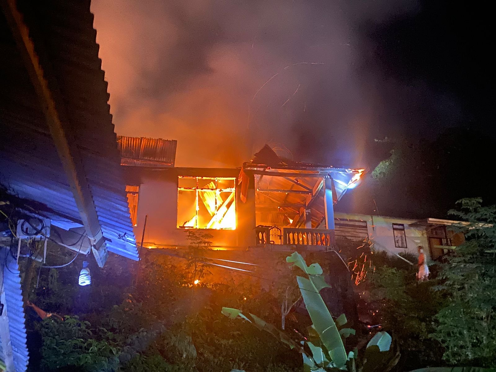 Rumah tersebut berada di atas bukit. Kondisi bahan bangunan yang mudah terbakar membuat nyala api melalap seluruh bagian rumah dengan cepat.