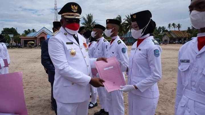Buton Tengah – Bupati Samahuddin memberikan hadiah uang tunai sebesar Rp1 juta kepada 70 anggota Paskibra tingkat Kabupaten Buton Tengah (Buteng), Sulawesi Tenggara (Sultra) yang terdiri atas Pasukan 8, 17, dan 45.