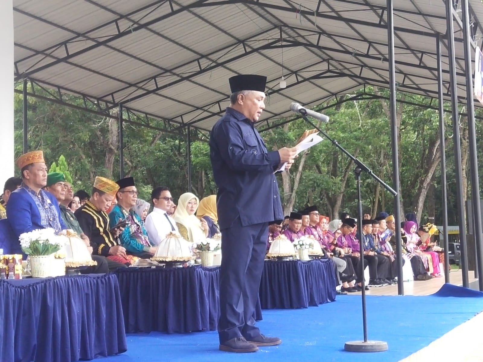 Selaku pemimpin upacara, Bupati KSK menyampaikan pidato dari Menteri Pendidikan, Kebudayaan, Riset, dan Teknologi (Mendikbudristek) Republik Indonesia (RI), Nadiem Anwar Makarim.