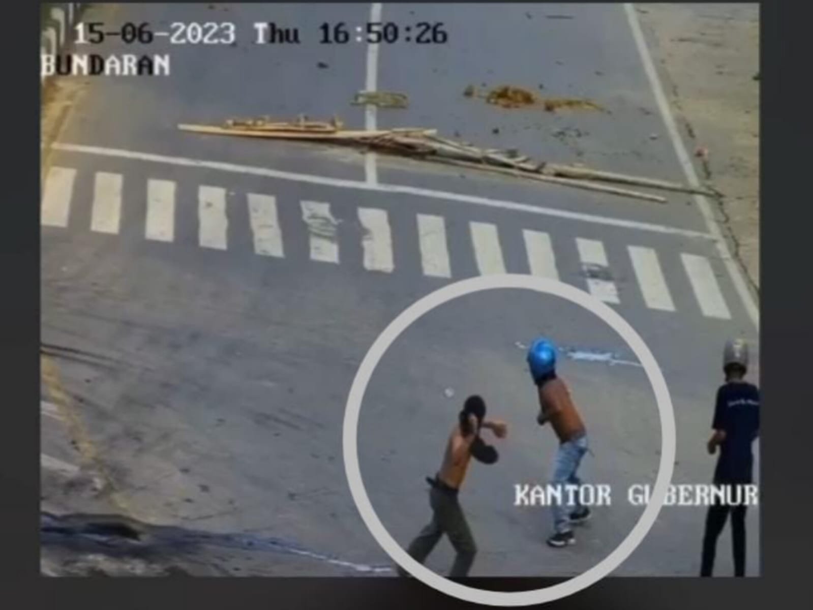 Detik-detik dua pendemo anarkis lempar petugas pakai batu dan menyerang polisi pakai katapel yang diduga busur. Foto: Istimewa. (15/6/2023).