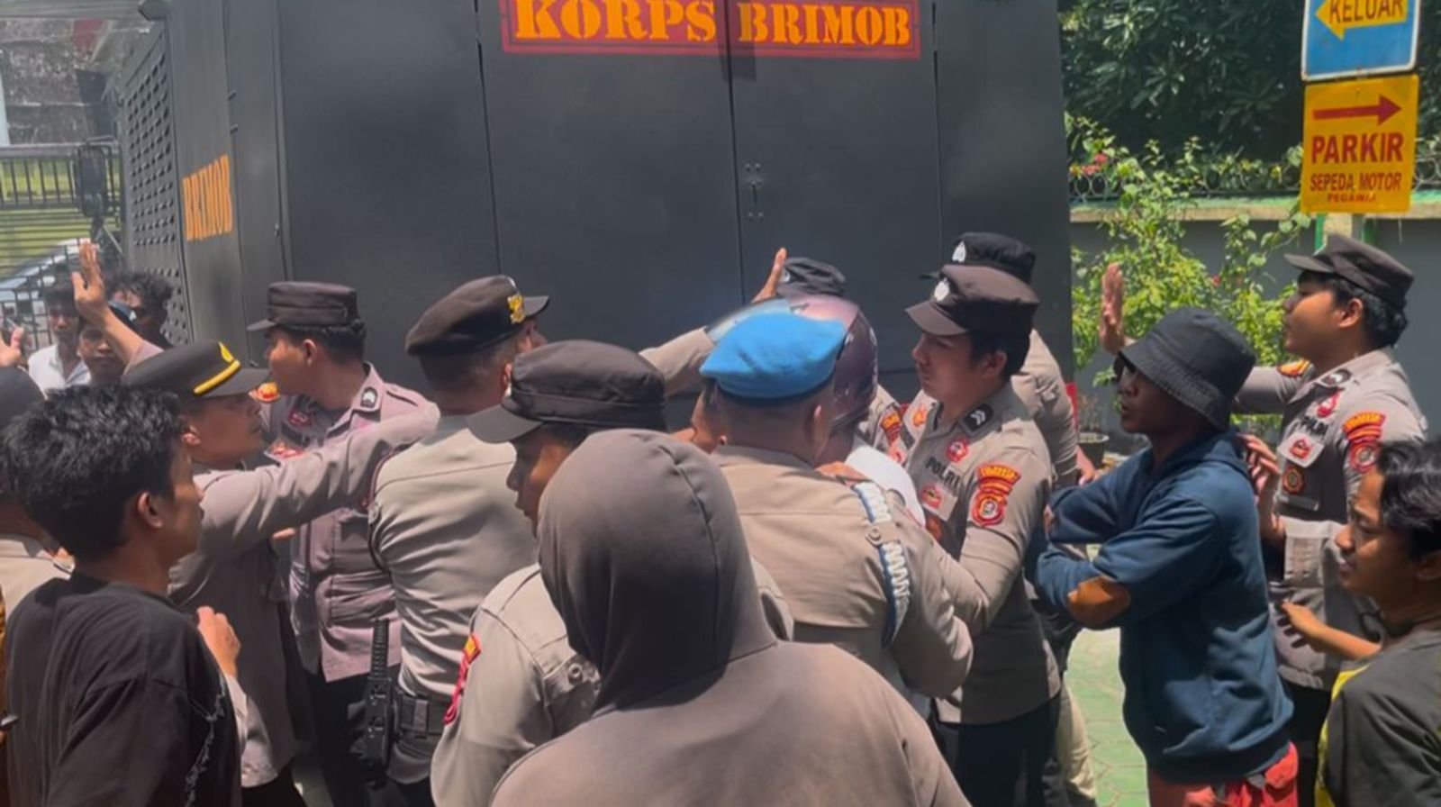 Saat api sudah tinggi, seorang polisi datang untuk memadamkan ban tersebut. Tindakan itu memicu reaksi dari sebagian massa yang terpancing emosi dan berusaha menyerang aparat yang berjaga. Aksi sempat ricuh dan suasana menjadi tegang beberapa menit.