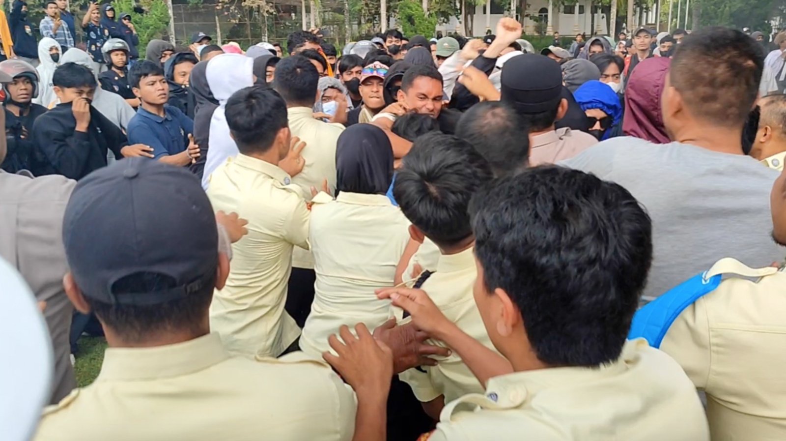 Demonstrasi Tolak Perpanjangan Jabatan Zamrun sebagai Rektor UHO Kendari Ricuh