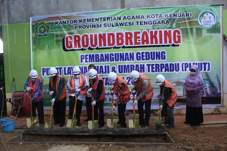 Kendari – Kantor Kementerian Agama (Kemenag) Kota Kendari, Sulawesi Tenggara (Sultra) baru saja melakukan peletakan batu pertama (groundbreaking) pembangunan Pusat Layanan Haji dan Umrah Terpadu (PLHUT), Kamis (26/5/2022). Padahal, Kantor Kemenag Kota Kendari merupakan penyumbang jemaah haji terbesar di Sultra sejak lama.