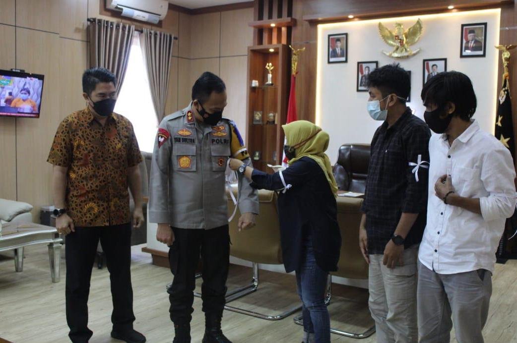 Dalam kunjungan tersebut, AJI menyematkan pita putih ke lengan Kapolda Sultra sebagai simbol solidaritas terhadap kasus kekerasan terhadap Jurnalis Tempo, Nurhadi di Surabaya.