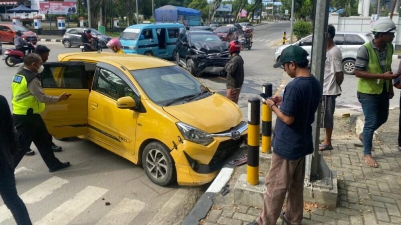 Kendari – Mobil Daihatsu Terios warna hitam pelat DT 1609 EF menabrak mobil rental merek Agya warna kuning pelat DT 1944 SE di perempatan Depan Kantor Wali Kota Kendari, Jalan H. Abdul Silondae, Kelurahan Mandonga, Kecamatan Mandonga, Kota Kendari, Sulawesi Tengggara (Sultra), Sabtu (5/11/2022) sekitar pukul 14.30 WITA. Tabrakan tersebut diduga akibat lampu lalu lintas yang mati, sehingga kecelakaan tidak bisa terhindarkan.