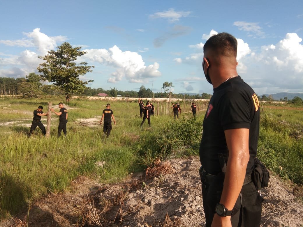Anggota Mako Brimob Polda Sultra yang sedang melakukan pembersihan lahan. Foto: Istimewa. (17/4/2021).