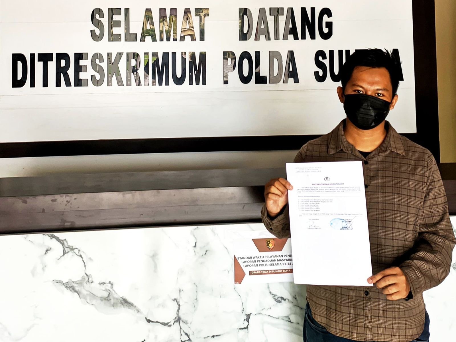 Warga asal Luwu Timur, Abdul Munir melaporkan warga Kolaka Timur (Koltim) berinisial S ke Polda Sultra. Foto: Istimewa.