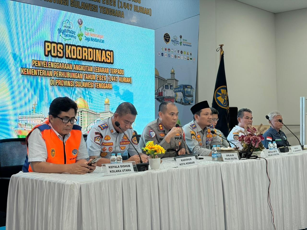 “Kami dari Lantas Polda Sultra sudah membuat tim, tugasnya nanti apabila ada kemacetan atau kecelakaan, tim inilah yang langsung turun bergerak cepat,” kata Faisal saat saat peluncuran Pos Koordinasi Penyelenggara Angkutan Lebaran Terpadu Kementerian Perhubungan (Kemenhub) 2026 di Terminal Puuwatu, Jumat (13/3/2026).