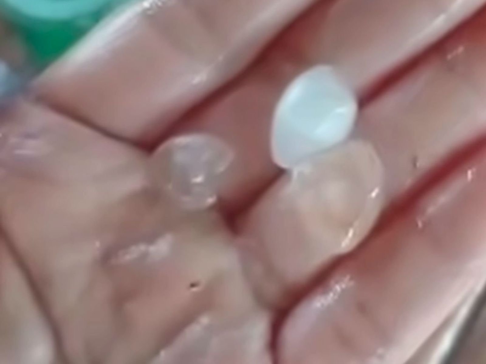 Butiran es turun bersamaan dengan hujan deras dan angin kencang. Sejumlah warga sempat merekam kejadian itu dan membagikannya melalui media sosial.