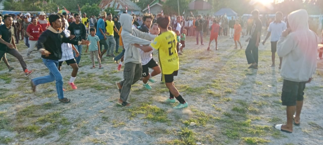 Muna – Partai final turnamen sepak bola di Lapangan Mandala Krida, Desa Wakobalu Agung, Kecamatan Kabangka, Kabupaten Muna, Sulawesi Tenggara (Sultra) dalam rangka Hari Ulang Tahun (HUT) ke-80 Republik Indonesia (RI), sempat diwarnai kericuhan. Pemain dan penonton saling pukul saat pertandingan sedang berlangsung, Sabtu (16/8/2025).