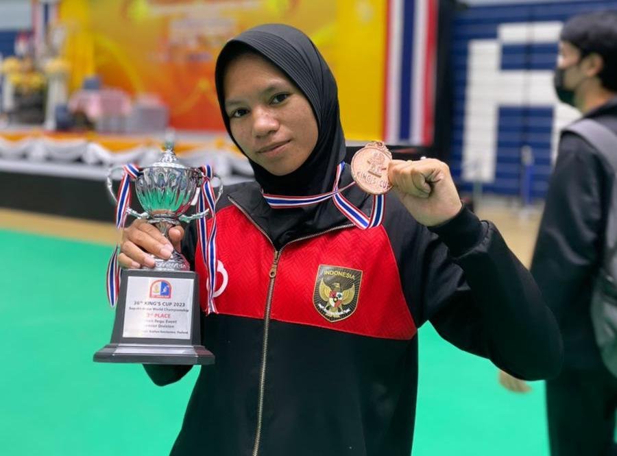 Olahraga – Fitra Siu mahasiswi Universitas Halu Oleo (UHO) peraih medali perunggu SEA Games Kamboja 2023 kembali mengukir prestasi pada kejuaraan dunia sepak takraw di Thailand.