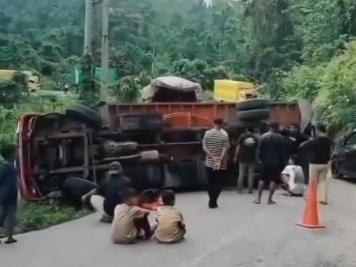 “Pada saat melintas di tanjakan Desa Anduna, truk tidak mampu menanjak karena muatan berlebihan. Akibatnya, as kendaraan patah dan truk terbalik,” ujar Iptu Subhan, Sabtu (26/12).