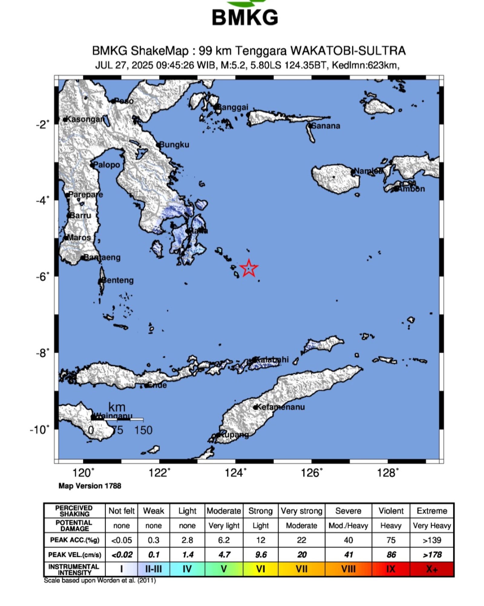Gempa M 5,2 Guncang Laut Banda Dekat Wakatobi, Tak Berpotensi Tsunami