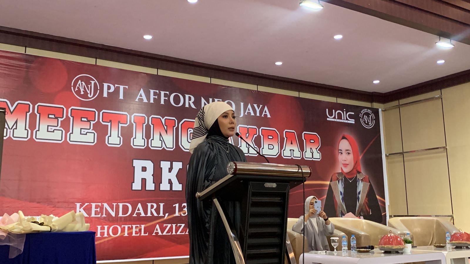 Kendari – Pendiri atau owner PT Affor Neo Jaya (PT ANJ) yang bergerak di dunia kosmetik dengan merek RK Glow (Kosmetik Viral), Nurlinda Dwi Sakti hadir di Kota Kendari untuk menemui ratusan anggotanya dari berbagai daerah di Indonesia, Senin (13/3/2023).