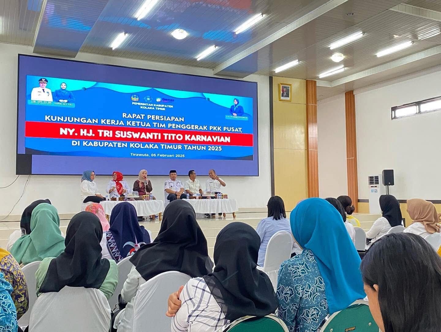 Kolaka Timur – Untuk menyambut kehadiran istri Menteri Dalam Negeri Tito Karnavian ini, Ketua TP PKK Koltim Hartini Azis, langsung memimpin rapat persiapan kunjungan kerja Ketum TP PKK, Rabu (5/2/2025).