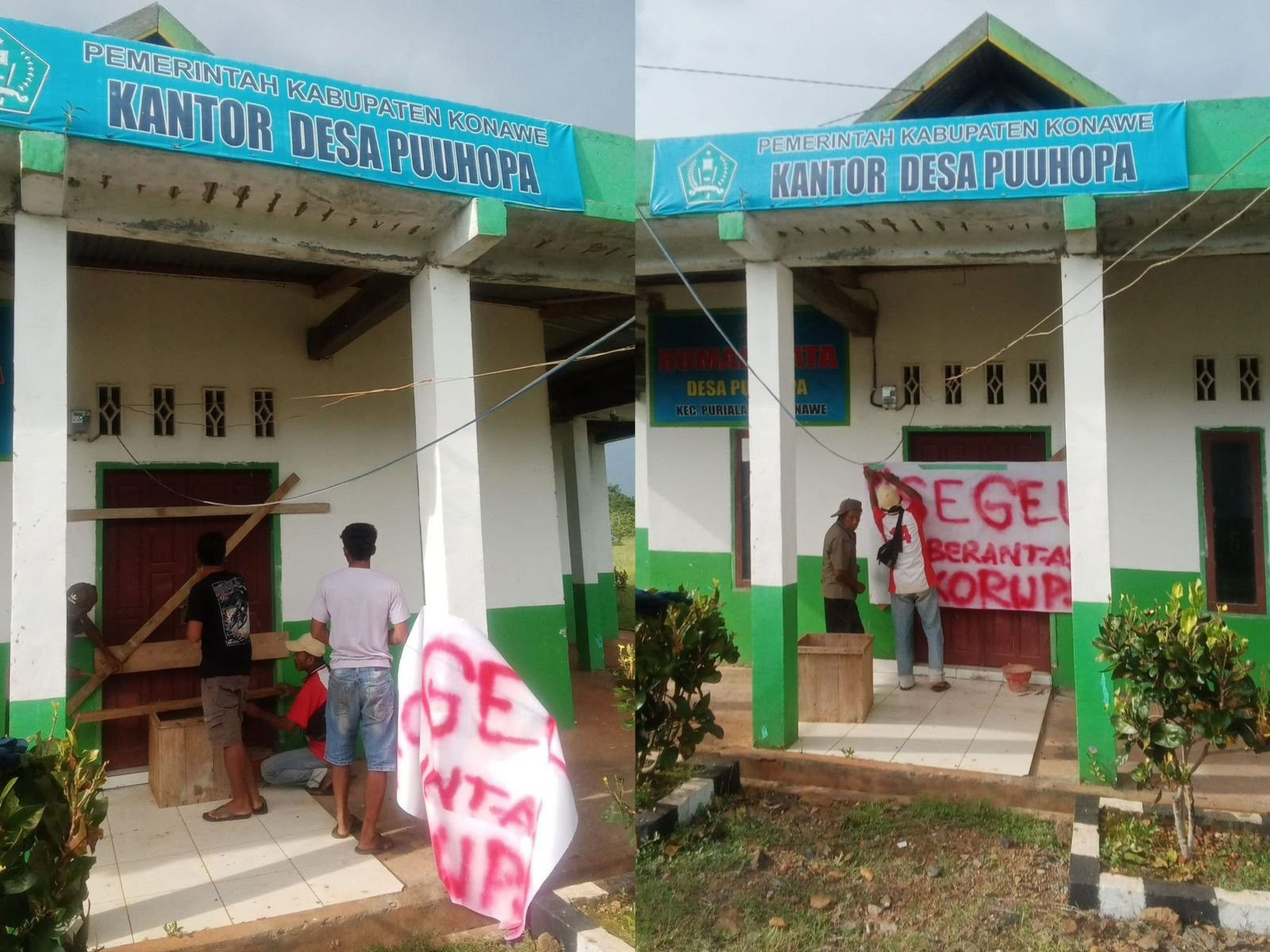 Honor Aparat hingga Dana Ketahanan Pangan Dipersoalkan, Warga Segel Kantor Desa Puuhopa Konawe