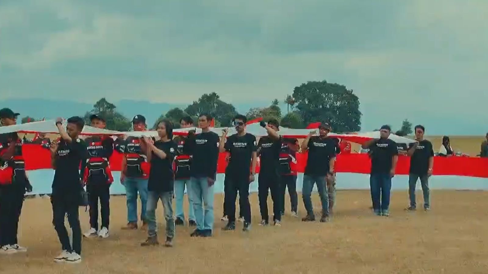Ratusan komunitas motor dari Sulawesi Tenggara mengibarkan bendera Merah Putih di Padang Pajjongan, Desa Waemputang, Kecamatan Poleang Selatan, Kabupaten Bombana. Foto: Istimewa. (17/8/2025).